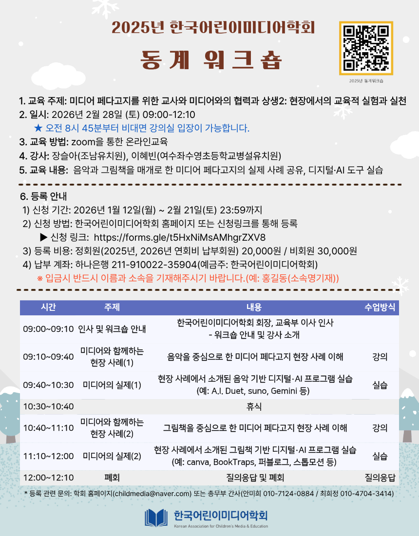 [한국어린이미디어학회] 2025 동계 워크숍 안내