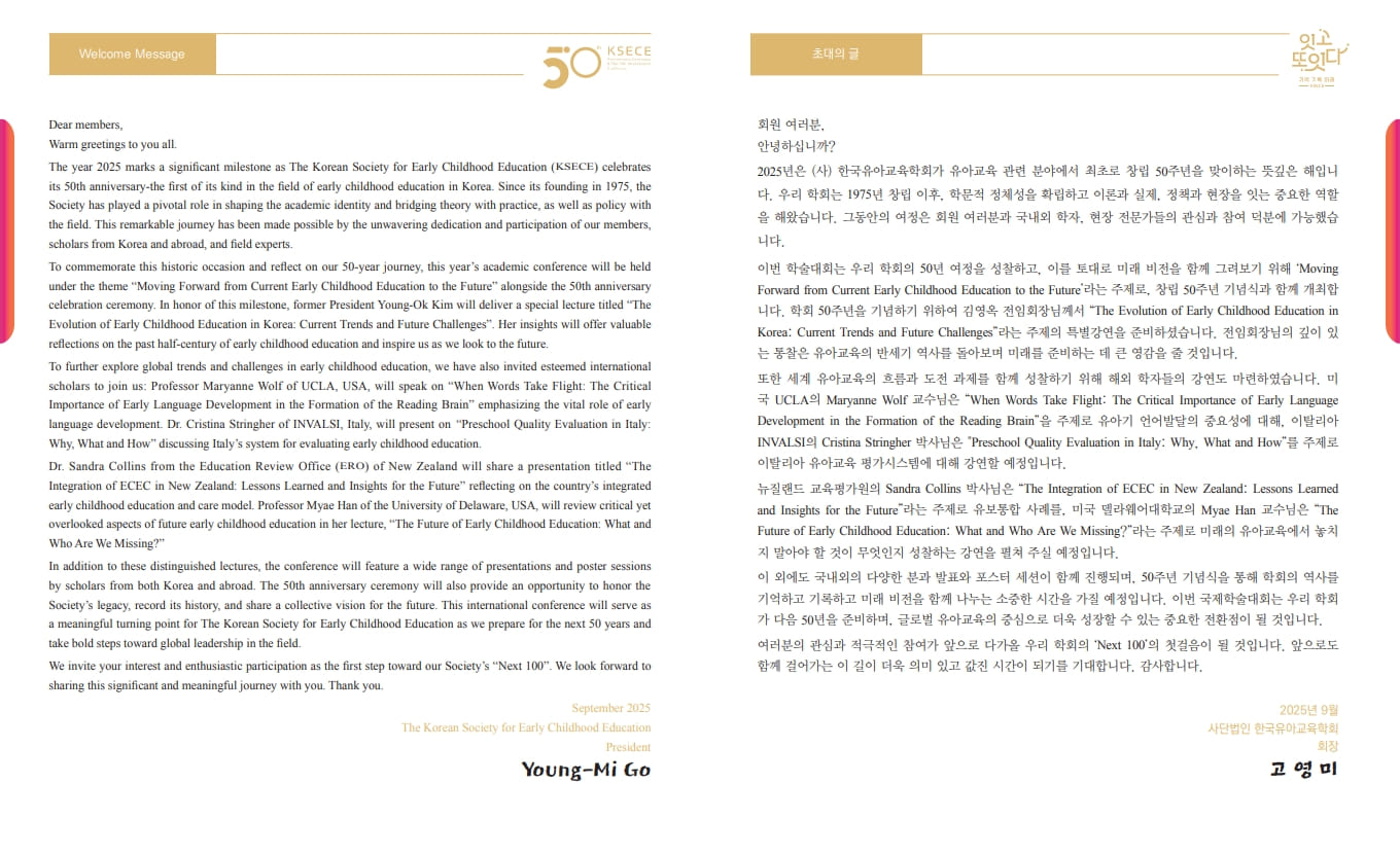 [한국유아교육학회] 50주년 기념행사 및 국제학술대회 리플렛